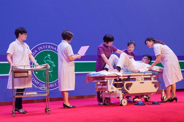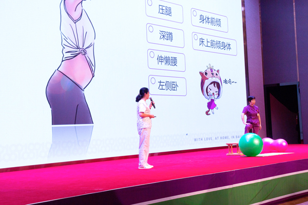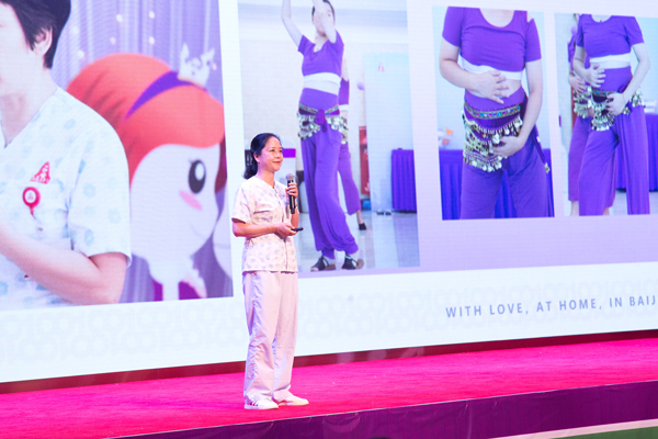 随后,特邀嘉宾朱晓青总助产长为到场的宝妈们讲解了舒适分娩相关知识,并由助产士门诊郭石凤主任做现场演示。